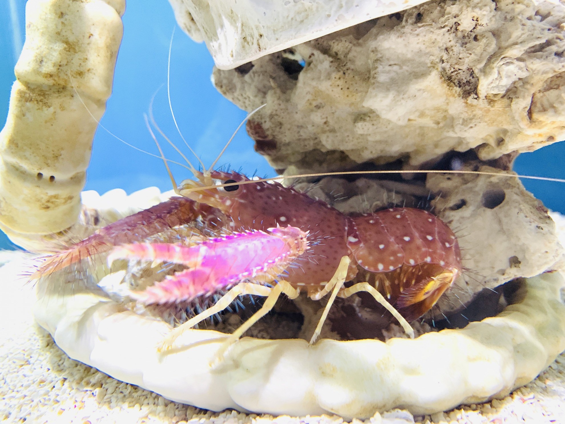 上海海昌海洋公园东方礁螯虾相关动物 上海海昌海洋公园日本须鲨 上海海昌海洋公园 - 18/01/2024 语音导览 中文名: 日本须鲨... 阅读更多 上海海昌海洋公园玳瑁石斑鱼 上海海昌海洋公园 - 18/01/2024 语音导览 中文名: 玳瑁石斑... 阅读更多语音导览 https://science.haichangoceanpark.com/wp-content/uploads/2022/11/dong-fang-jiao-ao-xia.mp3中文名: 东方礁螯虾英文名: Red reef lobster拉丁名: Enoplometopus occidentalis俗 名:暗礁虾东方礁鳌虾是夜行性动物,白天大部分时间都会躲在洞穴里,主要栖息于珊瑚礁或岩礁外围较深的地区,有领地意识,对同类会很凶猛。蜕皮后会躲在洞穴里直到壳变硬。 浏览647 园区更多发布 上海海昌海洋公园日本须鲨 上海海昌海洋公园 - 18/01/2024 语音导览 中文名: 日本须鲨... 阅读更多 上海海昌海洋公园玳瑁石斑鱼 上海海昌海洋公园 - 18/01/2024 语音导览 中文名: 玳瑁石斑... 阅读更多 上海海昌海洋公园日本刺尾鱼 上海海昌海洋公园 - 16/12/2023 语音导览 中文名: 日本刺尾... 阅读更多上海海昌海洋公园http://www.haichangoceanpark.com/shanghai上海海昌海洋公园拥有五大主题区、十大明星剧目、十大主题场馆、十大游乐设施设备,更有《虎鲸传奇》、《海豚奇缘》、《海狮哈哈秀》等明星剧目震撼上演。来海洋掌超级大秀,奇遇以虎鲸为首的海洋超级种群,一天穿越南北极、五大洋,开启观鲸之旅!一站式体验全球首个奥特曼主题娱乐区、全国首个航海王主题宝藏区域。配套两大主题酒店,为游客带来精彩纷呈、老少咸宜的梦幻体验。更多动物科普前一篇文章伍氏鞭藻虾下一篇文章夏威夷海星虾最受欢迎 上海海昌海洋公园三带圆雀鲷 上海海昌海洋公园普通黄道蟹 有声读物 - 上海海昌海洋公园海狮叫声