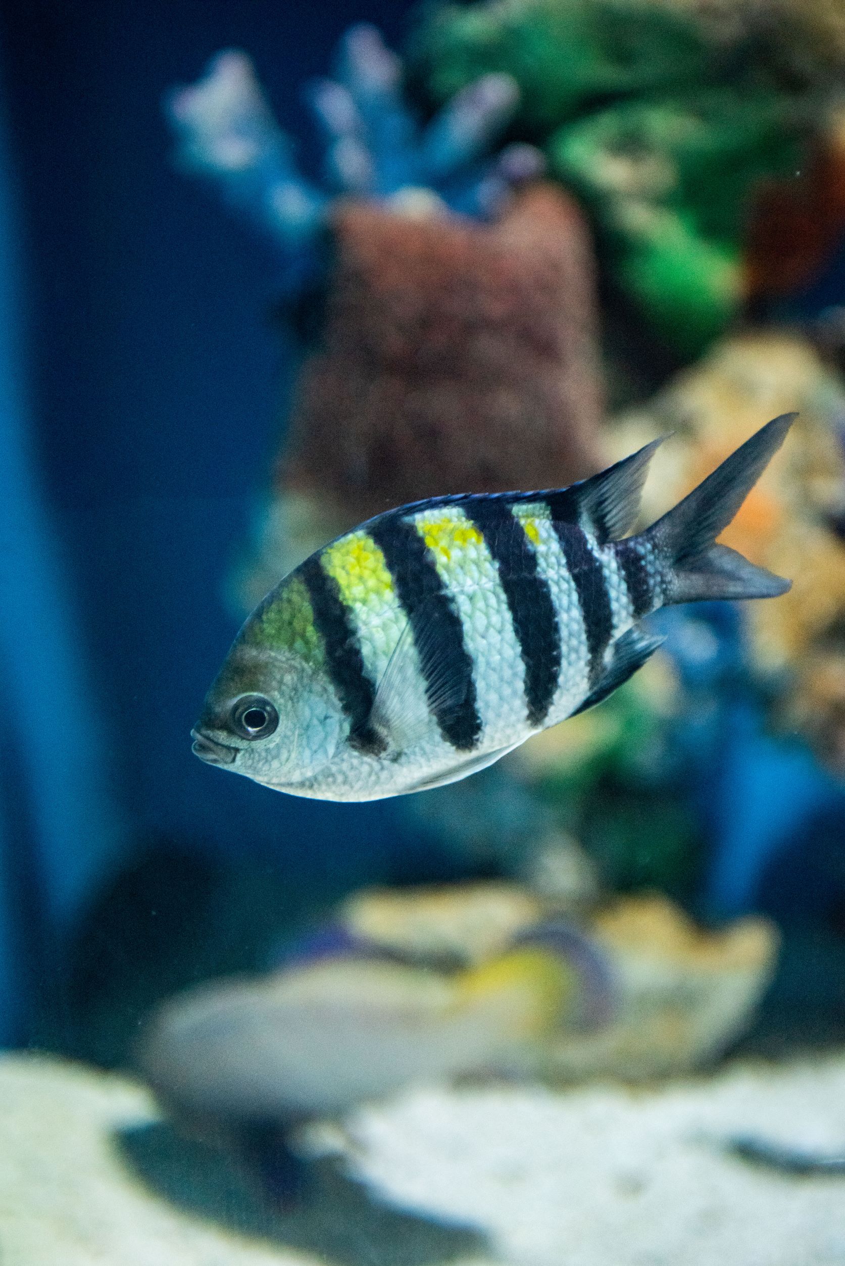 上海海昌海洋公园岩豆娘鱼相关动物 上海海昌海洋公园日本须鲨 上海海昌海洋公园 - 18/01/2024 语音导览 中文名: 日本须鲨... 阅读更多 上海海昌海洋公园玳瑁石斑鱼 上海海昌海洋公园 - 18/01/2024 语音导览 中文名: 玳瑁石斑... 阅读更多语音导览 https://science.haichangoceanpark.com/wp-content/uploads/2023/06/yan-dou-niang-yu.mp3中文名: 岩豆娘鱼英文名: Sergeant-major拉丁名: Abudefduf saxatilis俗 名: 五间雀当岩豆娘鱼游过浅色沙滩或礁石时,鱼体体色偏淡。背面变成淡黄色,有时会变成绿色。鱼的下半部分和头部一样是浅灰色。当它们在黑暗中的岩石和珊瑚之间移动时,颜色会从浅灰色变为深蓝色。雄性在用卵守卫巢穴时也会采用这种颜色。 浏览765 园区更多发布 上海海昌海洋公园日本须鲨 上海海昌海洋公园 - 18/01/2024 语音导览 中文名: 日本须鲨... 阅读更多 上海海昌海洋公园玳瑁石斑鱼 上海海昌海洋公园 - 18/01/2024 语音导览 中文名: 玳瑁石斑... 阅读更多 上海海昌海洋公园日本刺尾鱼 上海海昌海洋公园 - 16/12/2023 语音导览 中文名: 日本刺尾... 阅读更多上海海昌海洋公园http://www.haichangoceanpark.com/shanghai上海海昌海洋公园拥有五大主题区、十大明星剧目、十大主题场馆、十大游乐设施设备,更有《虎鲸传奇》、《海豚奇缘》、《海狮哈哈秀》等明星剧目震撼上演。来海洋掌超级大秀,奇遇以虎鲸为首的海洋超级种群,一天穿越南北极、五大洋,开启观鲸之旅!一站式体验全球首个奥特曼主题娱乐区、全国首个航海王主题宝藏区域。配套两大主题酒店,为游客带来精彩纷呈、老少咸宜的梦幻体验。更多动物科普前一篇文章面包海星下一篇文章小高鳍刺尾鱼最受欢迎 武汉海昌极地海洋公园水母 郑州海昌海洋旅游度假区沙丁鱼 上海海昌海洋公园纳氏鳐鲼